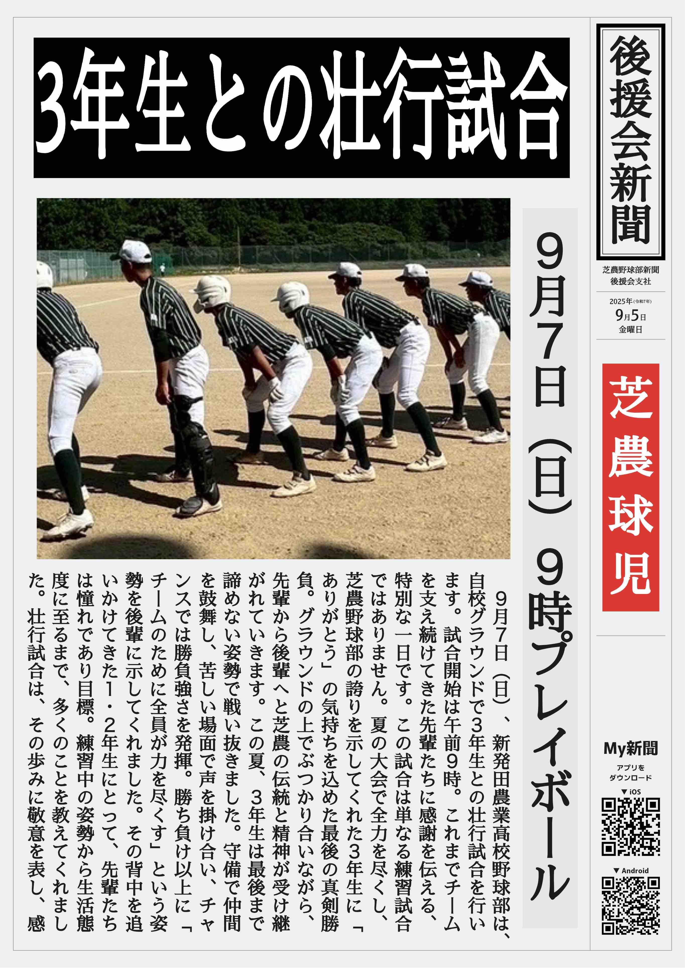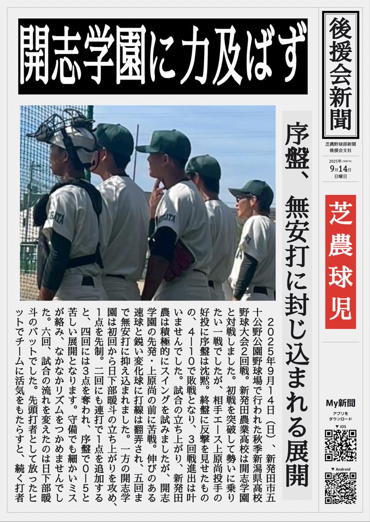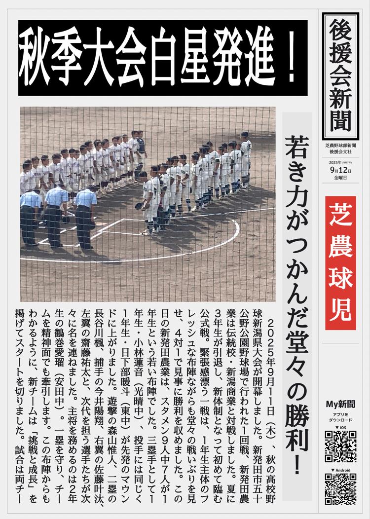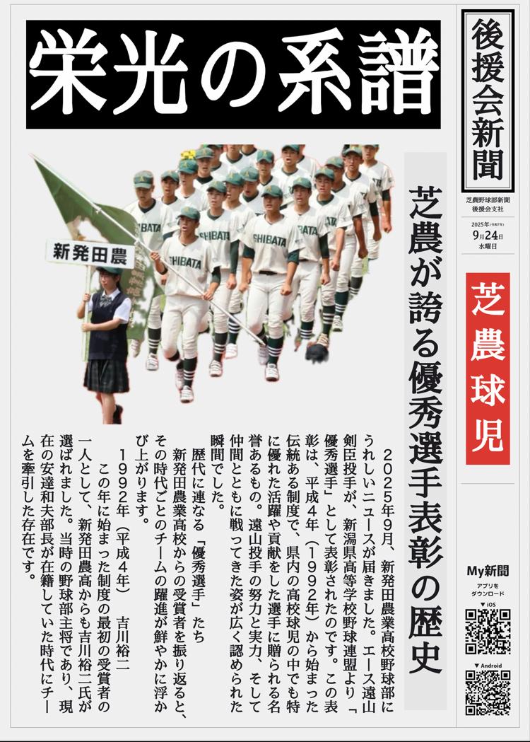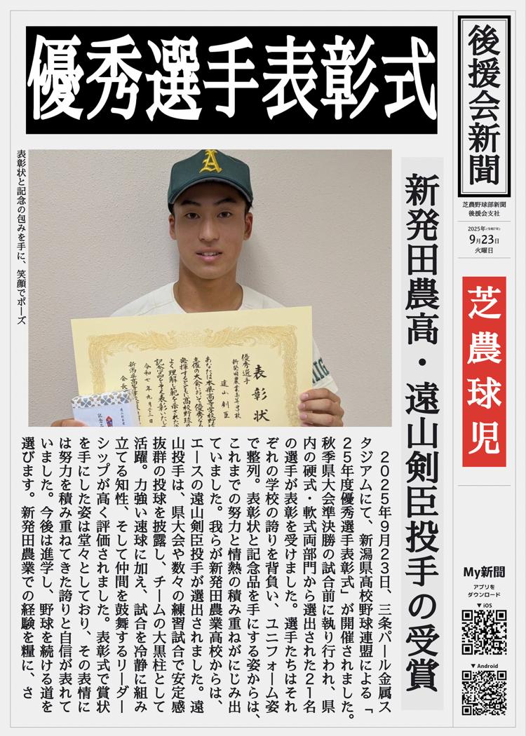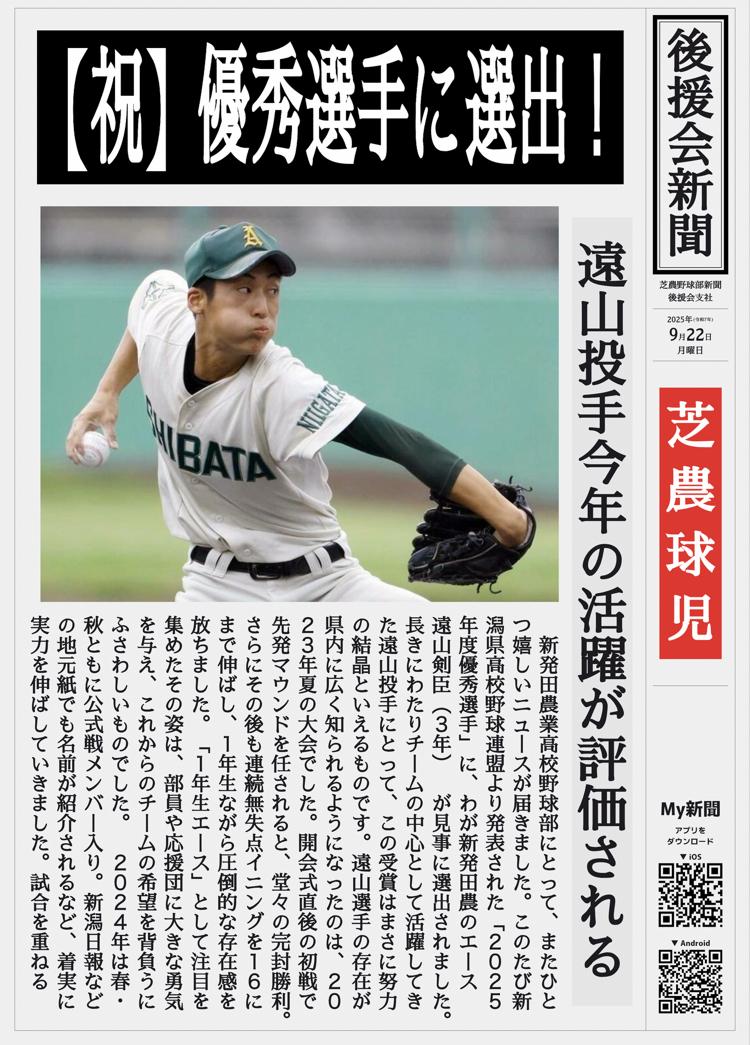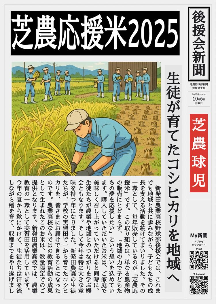 後援会は、新発田農業高等学校野球部を物心両面から応援します。