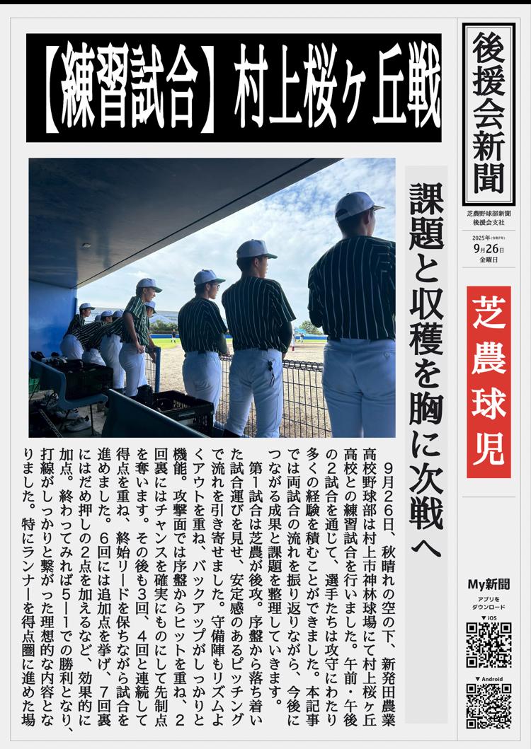 物心両面からサポートし、さらなるシバノウ野球部の躍進と発展に貢献していくことを願っています。